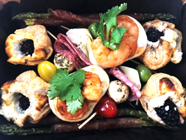 Appetizer: Blackberry Brie & Thyme Tarts, Grilled Prosciutto Wrapped Asparagus, and Antipasto Skewers ~or~ Okanagan Charcuterie featuring naturally cured meats, artisan cheeses, pickled red onion, olives, condiments, dried fruits & nuts and assorted crackers &/or baguette slices
